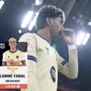 西甲第27轮,巴塞罗那客场1-0击败毕尔巴鄂竞技,此役打入唯一进球的巴萨前锋亚马尔当选西甲官方全场最佳球员。