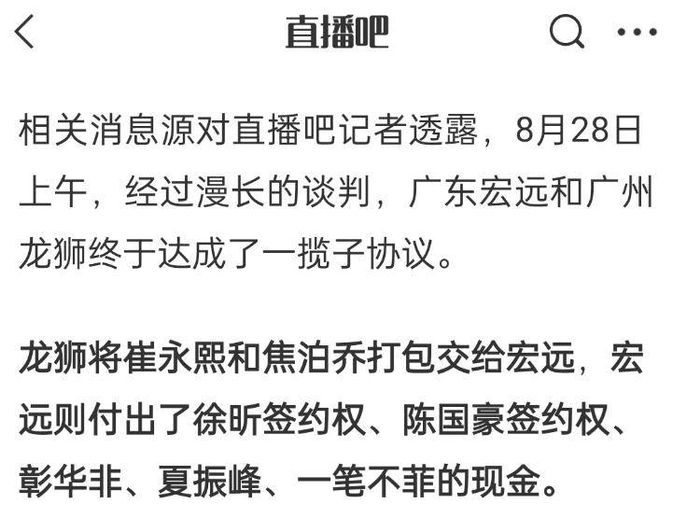 据多家媒体透露,广东宏远与广州龙狮在休赛期内完成了多笔交易,陈国豪以及彰华非被送往焦泊乔的位置,最引人注目的是,朱芳雨通过以徐昕换来崔永熙的安排。崔永熙的去向随之定案,经过这一轮轮的操作,广东宏远的整体实力显著提升,朱芳雨这波操作在球迷和行业圈中都被视作高明之举,甚至被部分人誉为“一战封神”。