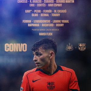 北京时间3月8日,巴萨官方公布了欧冠1/8决赛首回合对阵纽卡斯尔联的大名单。