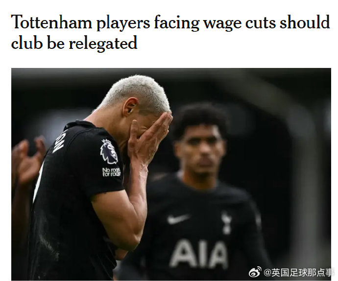 托特纳姆热刺球员合同中备受关注的降级条款,近期因球队陷入保级危机而被推至风口浪尖——若球队从英超降级,绝大多数球员将面临强制性50%的薪资削减,这一严苛条款被英媒称为俱乐部应对财务灾难的“生存保险”。