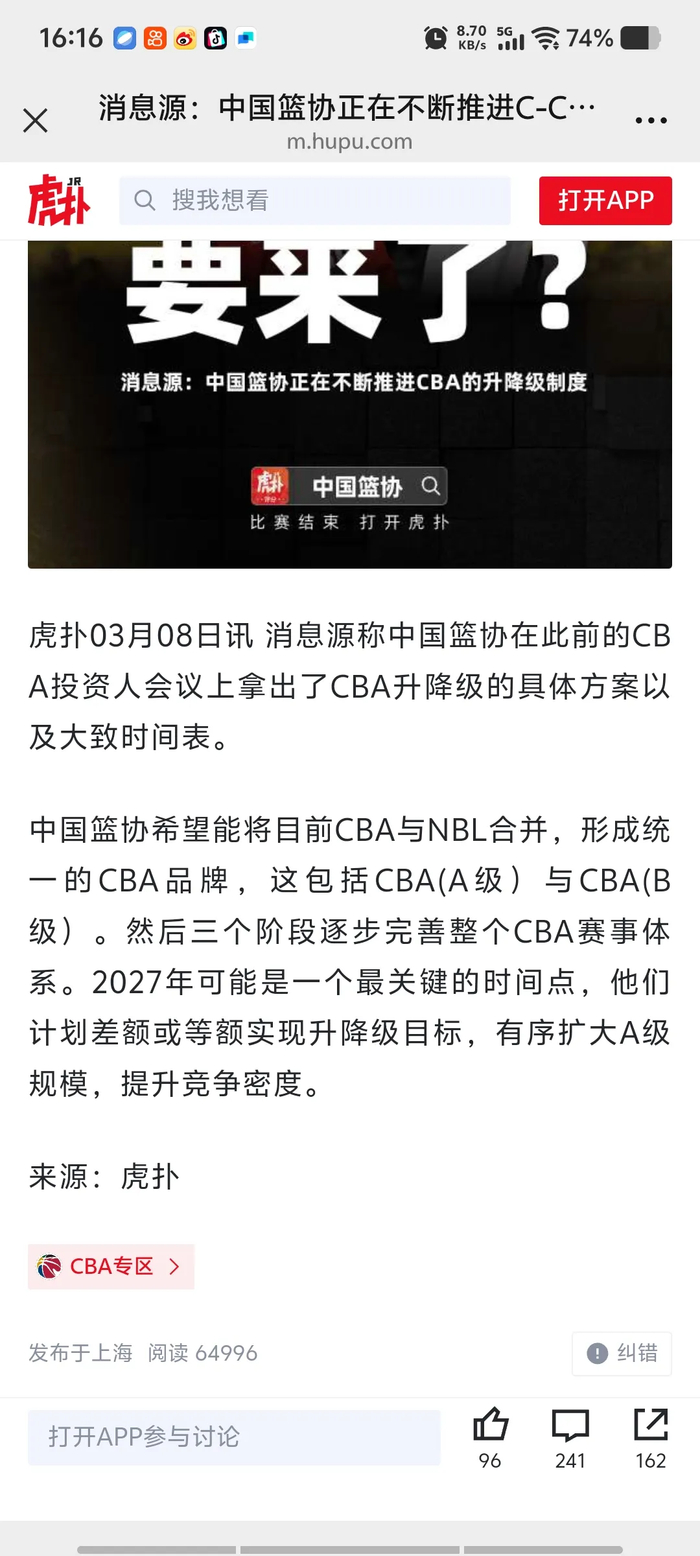今年2月初,当我在个人平台独家爆料中国篮协正酝酿重启CBA升降级时,不少人还在质疑:“这又是一次狼来了吗?”毕竟,关于升降级的讨论在CBA联赛历史上从未间断,却始终停留在纸面。而这一次,当全明星周末的会议尘埃落定,当俱乐部的支持票逐一落下,我知道,那些曾被视为“天方夜谭”的改变,终于要照进现实了。 一、2月初的预判:在迷雾中看见方向2月初的那个深夜,我反复斟酌着消息源的每一个字。接近篮协核心的人士告诉我,针对四川队长期垫底、联赛竞争密度不足的沉疴,篮协已经下定决心,要在下赛季(2026-27赛季) 正式引入升降级机制。方案的核心,是将CBA与NBL合并,打造CBA(A级)与CBA(B级)的两级体系,而NBL冠军香港金牛,将成为首个冲击顶级联赛的候选者。这个消息太过重磅,也太过敏感。在发布前,我经历了激烈的内心挣扎:是选择稳妥,等待官方通稿?还是冒着被质疑“博眼球”的风险,把这个关乎中国篮球未来的信号传递出去?最终,我选择了后者。作为一名深耕篮球报道二十余年的媒体人,我深知,有些真相,需要有人先站出来。当爆料发出后,评论区的反应如我所料:有人兴奋,有人怀疑,更有人直接断言“不可能”。但我没有动摇。因为我知道,这不是空穴来风,而是基于对中国篮球改革逻辑的深刻理解——当联赛的商业价值和竞技水平陷入瓶颈,打破固化的格局,引入鲶鱼效应,是唯一的破局之路。 二、全明星周末:从讨论到共识的跨越时间来到3月的全明星周末,当各俱乐部老板、总经理齐聚一堂,升降级的议题被正式摆上了台面。与2月初的“独家预判”不同,这次会议上,篮协拿出了具体的方案和时间表:- 合并体系:将CBA与NBL合并,统一为CBA品牌,分为A级(原CBA)和B级(原NBL)。- 关键节点:2027年将成为试点升降级的关键年份,计划差额或等额实现升降级目标,有序扩大A级规模。- 俱乐部支持:绝大多数俱乐部对这一改革表示支持,认为这将倒逼球队提升竞争力,激活联赛活力。当我看到会议的细节被媒体披露时,心中百感交集。那些在2月初被我写进文章里的关键词——“升降级”、“NBL合并”、“2027年试点”,如今都一一得到了印证。更让我欣慰的是,我的提前爆料,并非只是一次“预言”,更像是一颗投入湖面的石子,激起了讨论,推动了共识的形成。当越来越多的人开始正视升降级的必要性,当俱乐部从观望转向支持,改革的车轮,便再也无法停下。 三、欣慰与期许:这只是开始此刻,我感到的不是“我早说过”的得意,而是一种沉甸甸的欣慰。作为一名媒体人,我的价值不仅在于记录,更在于洞察和推动。当我看到自己的文字,能够成为连接决策层与公众的桥梁,能够让那些深埋在会议室里的讨论,变成全社会关注的话题,我便觉得,所有的坚持和风险,都是值得的。当然,我也清醒地知道,升降级的落地,只是中国篮球改革的第一步。从方案到执行,从试点到常态化,还有无数的细节需要打磨,无数的利益需要平衡。但至少,我们已经迈出了最艰难的那一步。未来,我依然会坚守在一线,用我的笔和我的镜头,继续见证中国篮球的每一次心跳。因为我始终相信,当每一个热爱篮球的人都能发出自己的声音,当每一次改革都能直面问题、凝聚共识,中国篮球的未来,就一定值得期待。