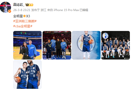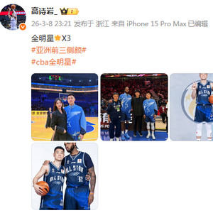 高诗岩更新社媒发文:全明星🌟X3,亚洲前三的侧颜。