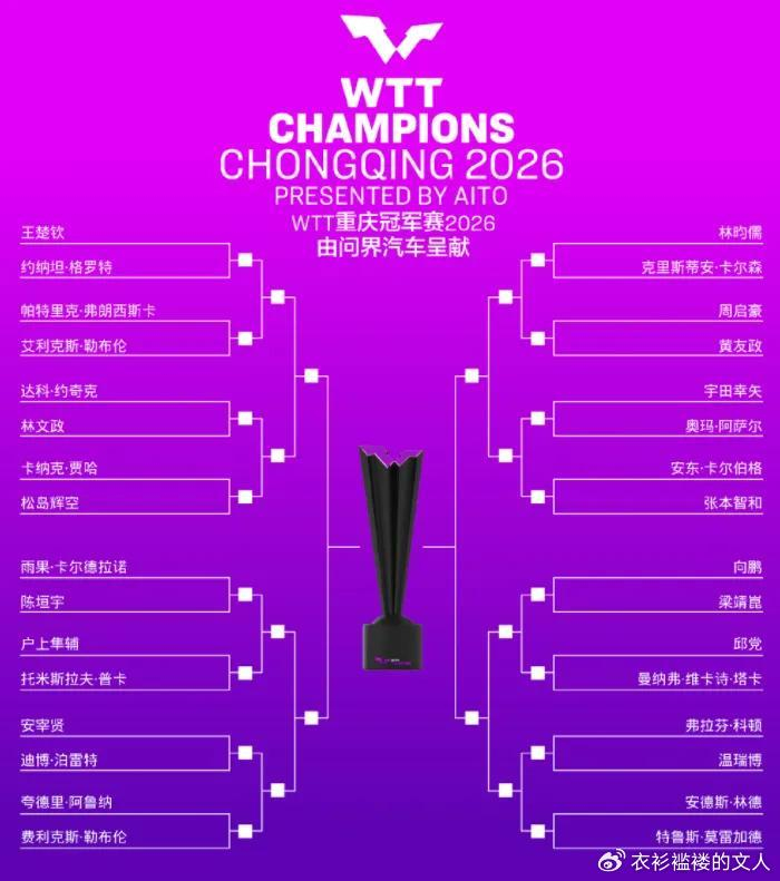 WTT重庆赛单打抽签出炉,男队陷死亡分组,孙颖莎VS朱芊曦
