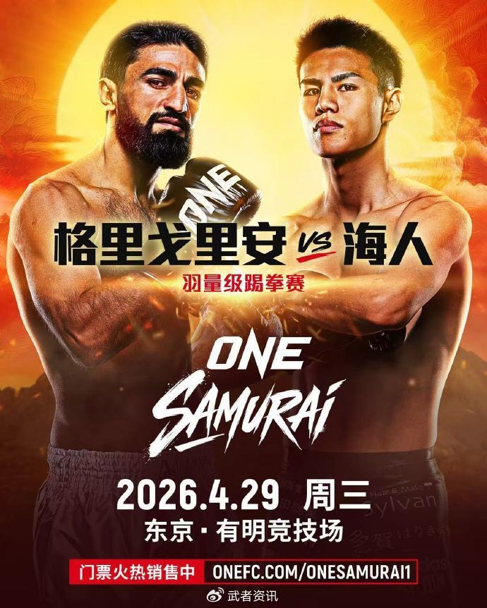 武者网讯 将于4月29日在日本东京举行的ONE冠军赛“武士”第一期比赛,官方又公布了一场备受关注的羽量级踢拳对决,前K-1、昆仑决和Glory轻量级冠军马拉特·格里戈里安(Marat Grigorian)对阵RISE和KNOCK OUT冠军大野海人(Kaito Ono)。