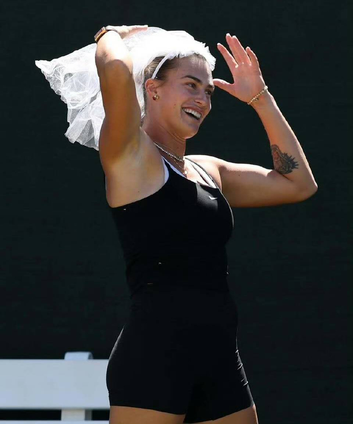 萨巴伦卡戴头纱训练的画面传到国内,网友彻底坐不住了,有网友表示,“笑死,别人训练出汗,她训练撒糖!”还有网友表示, “世界第一也是小女人啊,这反差萌我爱了。”也有网友调侃道, “印第安维尔斯:我到底是网球赛还是婚礼策划现场?”