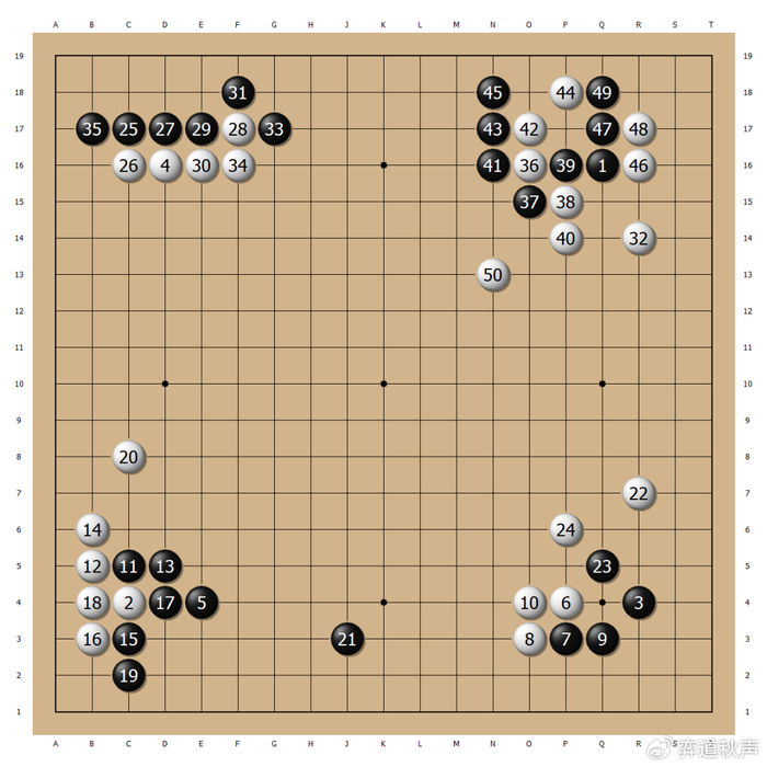 姜东润白14稳健单长,到黑21,双方都很扎实。