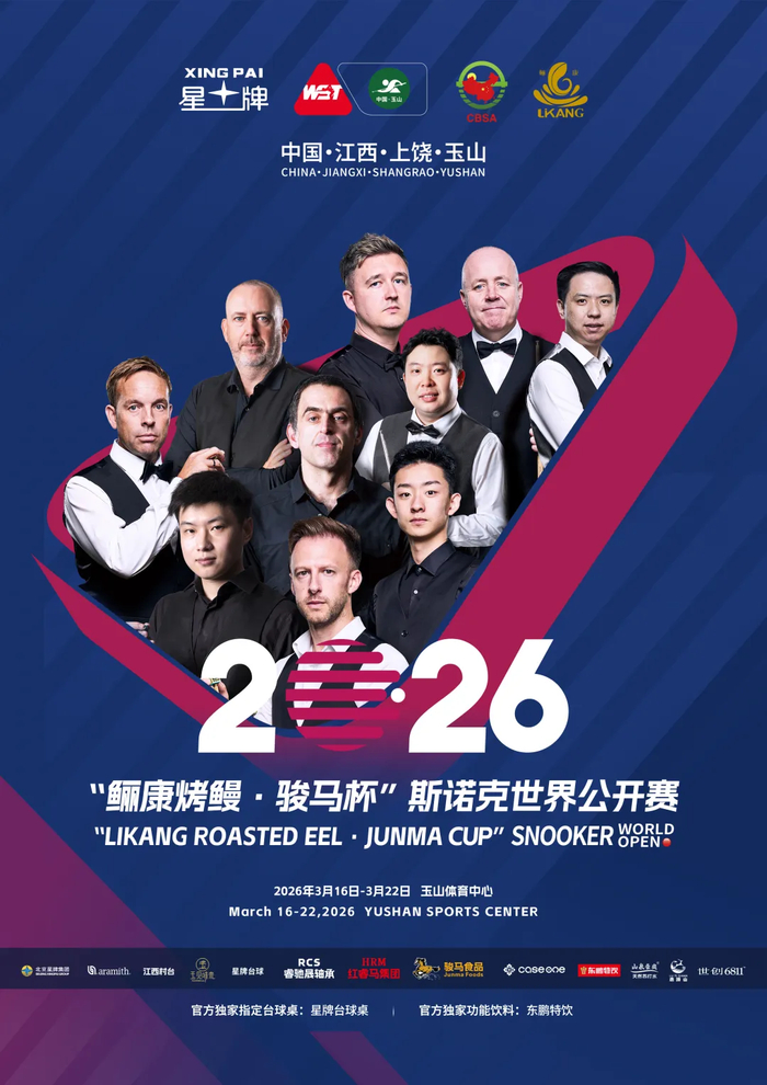3月16日,中国·江西·上饶·玉山2026“鲡康烤鳗·骏马杯”斯诺克世界公开赛在江西上饶玉山燃起战火。新科斯诺克世锦赛冠军赵心童登顶克鲁斯堡后首度来到玉山,肖国栋、吴宜泽、奥沙利文、特鲁姆普、希金斯、马克·威廉姆斯等中外明星齐聚“中国台球之都、世界台球名城”,向冠军发起冲击。