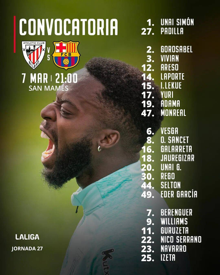 3月8日4:00,#西甲 联赛第27轮,排名第九的#毕尔巴鄂竞技 主场迎战领头羊#巴塞罗那。