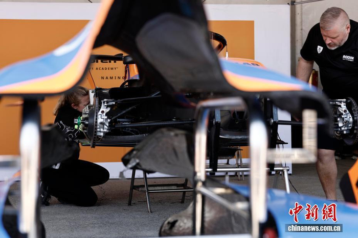 3月12日,工作人员在调试F1学院赛车。3月13日至15日,2026年F1中国大奖赛将在上海国际赛车场举行。与此同时,F1学院新赛季的揭幕战也将再次与F1中国大奖赛同期举行。据悉,?F1学院?是由?国际汽联?(FIA)与?一级方程式集团?于?2023年联合创立?的全女性单座方程式赛车赛事,旨在推动女性车手职业发展,构建从卡丁车到F1的完整晋升路径。中新社记者 殷立勤 摄