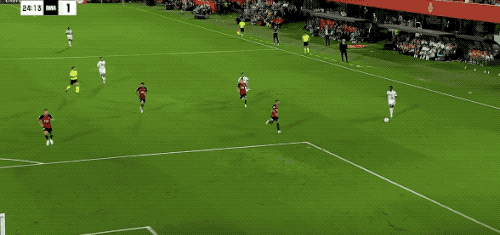 上半场比赛,皇马1-0暂时领先。下半场仅仅进行了7分钟,马洛卡就利用角球机会扳平比分,进球的是穆里奇。