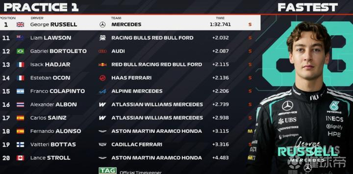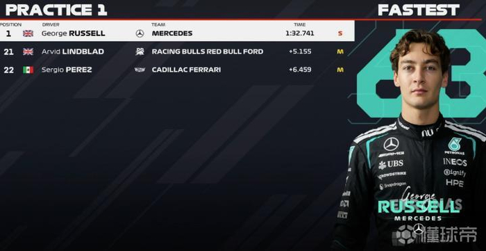 F1中国站一练:拉塞尔全场最快,安东内利第二,迈凯伦分列三四