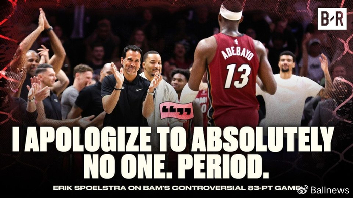 迈阿密热火主教练 埃里克·斯波尔斯特拉(Erik Spoelstra)在球队150-129战胜华盛顿奇才的比赛后,为巴姆·阿德巴约创造历史的 83分表现进行了强硬辩护。