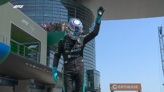 安全车撤离后,比赛剩余最后三圈。轮胎更新、斗志更旺的汉密尔顿开始展现七冠王的底蕴。第18圈,他利用轮胎优势在一号弯干净利落地超越诺里斯,重新夺回领奖台位置。而在前方,拉塞尔早已一骑绝尘,他将领先优势稳稳维持在4秒以上,没有给身后的任何对手机会。最终,黑色的梅赛德斯率先冲线,拉塞尔在上海国际赛车场举起了冲刺赛的冠军奖杯。