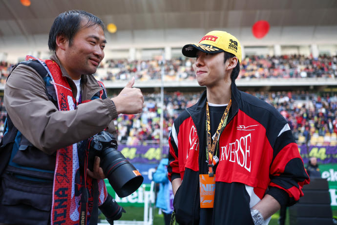1. 全程观赛:从冲刺赛到排位赛,他现身围场核心区域,被多次拍到专注观赛的神情。网友调侃其“追星打卡”的坚持,从去年追车队、与周冠宇同框到今年再度赴约,展现真爱粉本色。