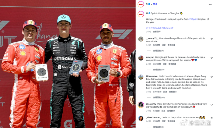 很荣幸为冲刺赛颁奖,祝贺“赛车皇帝”乔治-拉塞尔夺冠。田径是将人体的速度推到极致,而赛车是将人车合一的速度推到极致。@F1世界锦标赛 这种速度与激情,小妮子领教了。