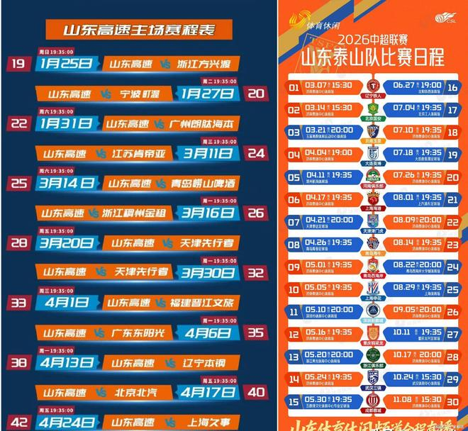 这是山东男篮和山东泰山的常规赛赛程,中超联赛刚刚开始,但CBA赛程过半,两支球队的比赛,山东体育休闲频道都会全程直播。山东男篮的比赛大家也可以通过抖音和快手观看,本赛季CBA积极拥抱短视频平台,免费看球成为常态。齐鲁德比和京鲁大战即将打响,大家对于这两场比赛有什么样的期待呢?在评论区留言吧,感谢大家支持!
