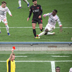 【拜仁前锋雅克松飞铲吃到红牌!】雅克松在西甲,英超和德甲都已经领到红宝石卡了!