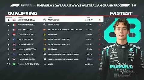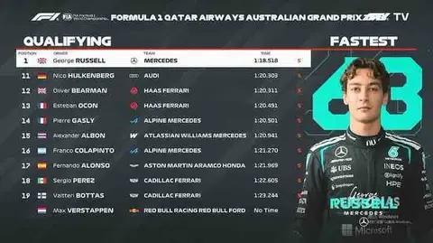 2026年F1澳大利亚大奖赛排位赛:梅奔包揽头排,维斯塔潘Q1出局