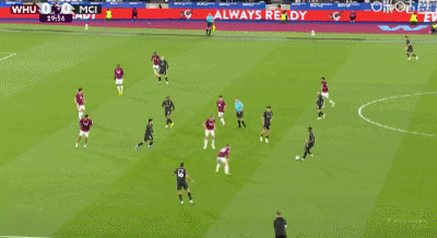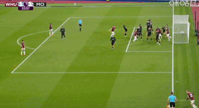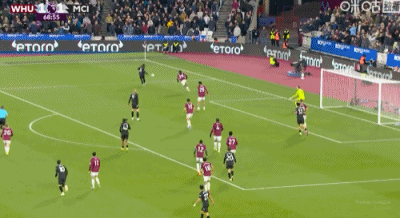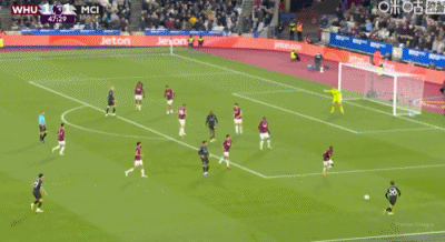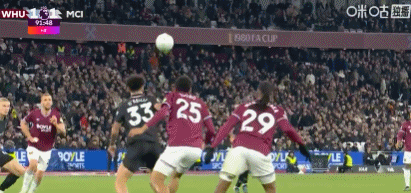 第31分钟,B席禁区左路吊射破门,曼城1-0西汉姆联
