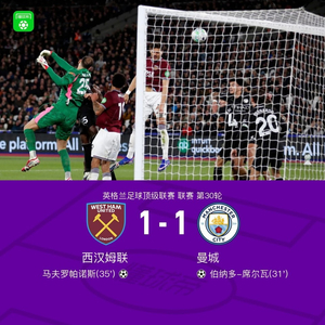 北京时间3月15日英格兰足球顶级联赛 联赛 第30轮,西汉姆联主场对阵曼城。西汉姆联马夫罗帕诺斯破门。曼城伯纳多-席尔瓦破门。最终比分西汉姆联 1-1 曼城。