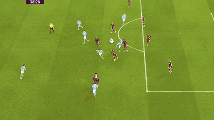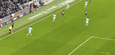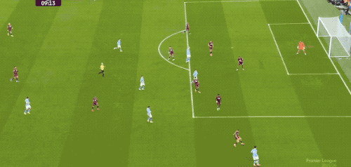 第69分钟,萨维尼奥利用速度和节奏的变化撕开西汉姆联的防线,刘易斯虚晃一枪,西汉姆联后卫配合失误,哈兰德梅开二度。