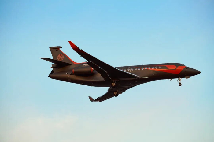 维斯塔潘抵达上海后没有出席很多公开活动,于是许多喜欢他的人在下班之后,专程到机场附近和这架特殊的达索猎鹰8X合影,过过瘾。