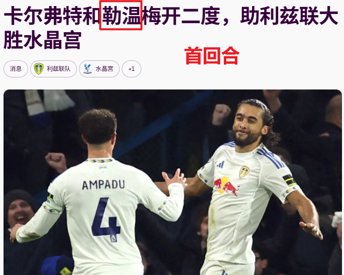 在首回合交锋中,利兹联曾在主场 4-1 狂胜过水晶宫,这在心理上给了他们极大的支撑。
