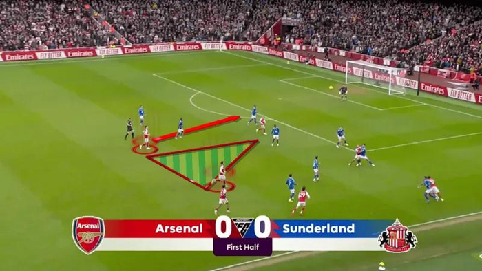 这种梯次站位是精心设计的策略,旨在给对手的中场防线制造战术难题:如果对手派出一名中场球员贴身盯防赖斯,他们的中路通道就会暴露,为进攻型中场留下前插空间;如果放任赖斯不管,他精英级别的传球能力又能确保皮球精准地输送到进攻三区。