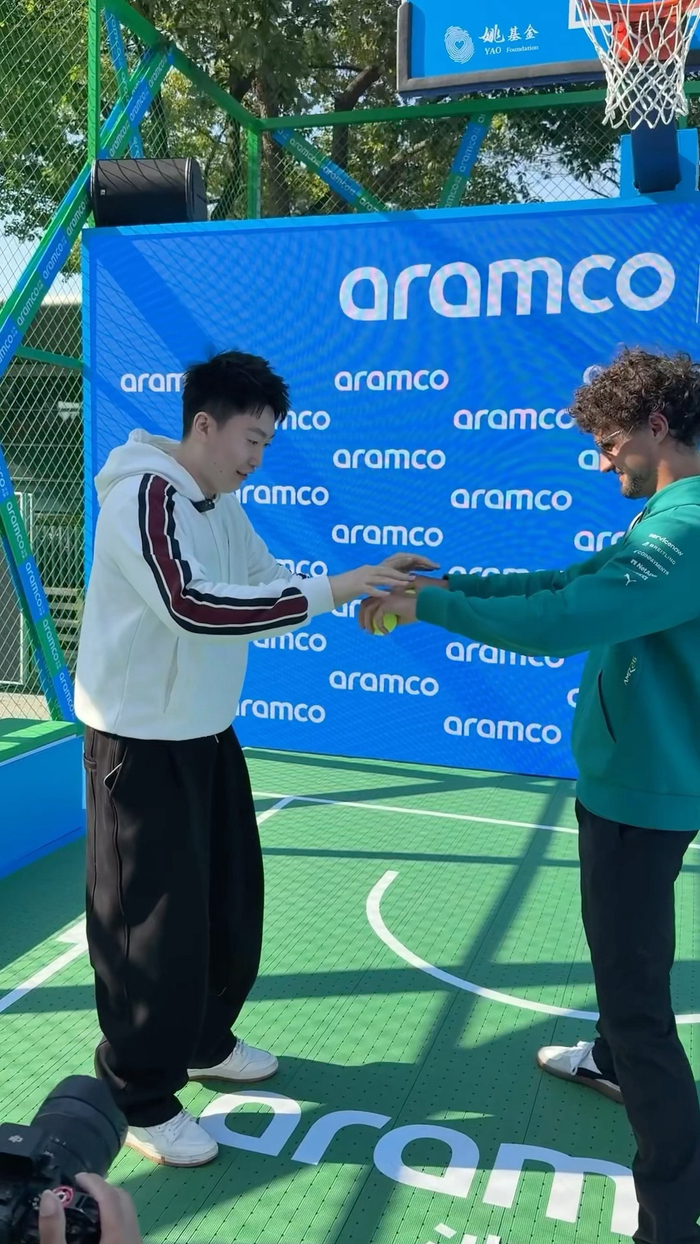 #F1中国大奖赛# 正赛开始前先热个身。和@阿斯顿马丁沙特阿美F1车队 的储备车手Jac和形象大使Jessica 玩了车手“基操”的网球反应力挑战。兄弟们,千万不要用自己的爱好挑战别人的职业。不过,虽然我反应力不够快,脖子也不够粗(头哥从我面前走过,脖子是真粗啊),但在其他运动项目上我还是可以比划比划的。#F1围场变身运动场# 投入新可能