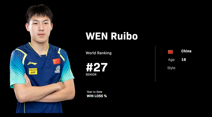 19岁的温瑞博世界排名仅仅27位,但他却是国乒唯一进入四强的男单选手(王楚钦碧迪松岛止步八强),换言之这位19岁的小将是国乒拿到本届重庆冠军赛男单冠军的唯一曙光。
