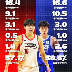 对比来看,尽管联赛环境、对抗强度和战术体系完全不同,杨瀚森本赛季在G联赛的产出与CBA时期几乎处于同一水平线。