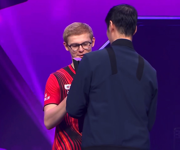 来到颁奖典礼,温瑞博还是比较淡定的。赛前他就表示会冲击勒布伦,他知道双方的差距,即便最终无缘冠军,但这样的结果已经很完美了。如果后续温瑞博总结这次赛事的优缺点,他的未来还是值得期待的。特别是他的应变能力,还有他的战术执行力,这都是他这次比赛展现出来的亮点。但对于快节奏的选手,温瑞博还是比较类似。