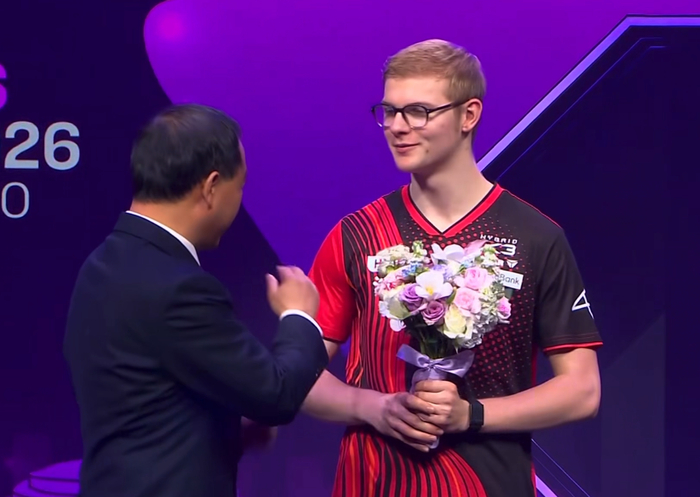 2026WTT重庆冠军赛男单决赛,温瑞博1-4不敌F勒布伦,获得亚军。比分:5-11、8-11、11-9、7-11、11-13。这场比赛温瑞博打得还是太被动了,因为对手的速度非常快,温瑞博一直都无法掌控自己的节奏。幸好第三局开始之后,温瑞博打出了相持球的优势,也放慢了,扳回一局。可惜后两局的节奏还是勒布伦这里,关键球的把控也差点意思。