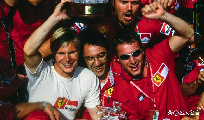 1999年的德国大奖赛上,米卡·萨洛、埃迪·埃尔文与法拉利团队一同庆祝冠亚军的包揽。