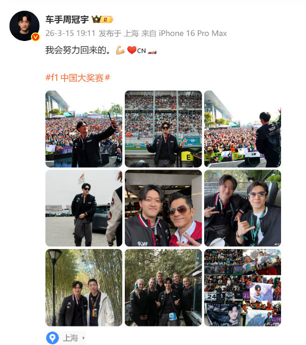 赛事落幕时,周冠宇发文“爱你们!明年见!”,粉丝同步发起话题#期待明年中国赛的周冠宇#,呼吁其“身披车队战袍在家乡赛道全速冲刺”。