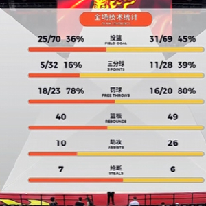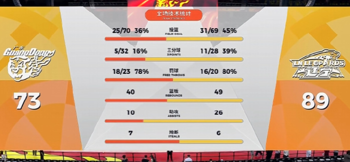 不只崔永熙,广东队大部分球员在本场的表现都非常低迷。广东队此役三分命中率低至15.6%,32投仅5中,而辽宁队的三分命中率则接近四成,命中了11记三分。仅三分球一项,广东队便比辽宁队少得了18分。另外,广东队本土球员在本场比赛陷入得分荒,萨姆纳、奎因和麦考尔三名外援得到了55分,本土球员合计仅有18分入账。