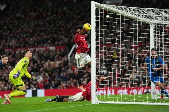 哨声刚响,阿马德就展现出强烈的进球欲望。开球后不久,他送出直塞给库尼亚,可惜巴西人的射门被挡。随后,他又接到梅森·芒特的传球,自己起脚轰门。阿马德始终是伯恩茅斯后防的噩梦,他的努力在第13分钟得到回报:达洛特送出精准传中,库尼亚的头球被门将扑出,阿马德机敏跟进,头球补射破门,为红魔首开纪录。