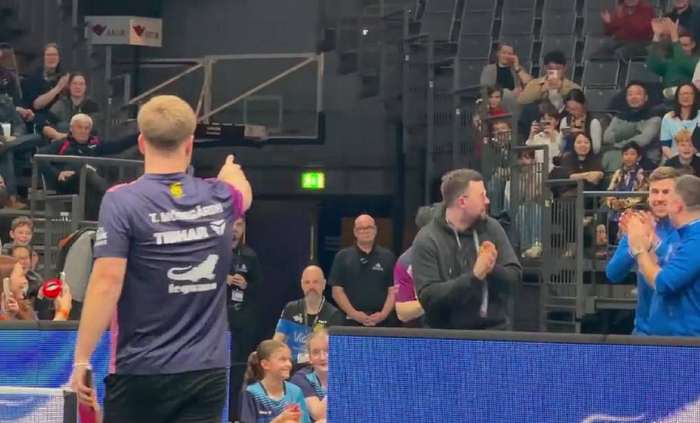 这段有趣互动发生在欧冠四分之一决赛萨尔布吕肯和亨尼邦的对决中。因为萨尔布吕肯在首回合大比分领先,俱乐部特意放松了比赛氛围,让选手们自由发挥出更多创意与趣味。樊振东作为团队灵魂人物,一边观看队友比赛,一边以笑容和鼓掌予以支持。当莫雷加德打出一记镜像樊振东标志性反手抽直线的高难度得分球后,他立即回头向樊振东示意,希望获得认可,那调皮的眼神和手势逗乐了所有人。