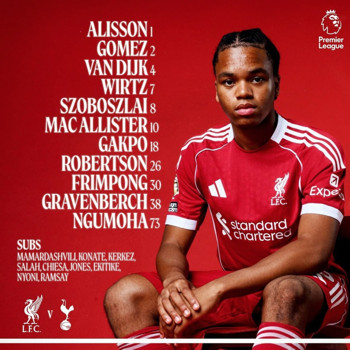 利物浦vs热刺:萨拉赫替补,恩古莫哈、加克波首发、特尔出战
