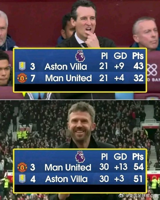 卡里克执教曼联9轮22分升至英超第三 英国足球那点事 优质体育领域创作者 03.1611:16 关注 卡圣的影响力!🐐🔥▪️卡里克上任时,曼联积 32 分,排名英超第 7,落后第 3 名维拉 11 分;▪️9 轮比赛过后,曼联拿到 22 分,排名英超第3,反超维拉 3 分💪#曼联3比1阿斯顿维拉#