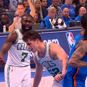 终场哨响,亚历山大砍下35分6篮板9助攻的全面数据,霍姆格伦虽只得14分,但最后9个篮板和两次价值连城的罚球,堪称“篮下收割机”。 杰伦·布朗空砍34分6篮板7助攻,拼尽所有。
