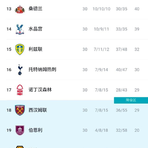 当前英超积分榜呈现窒息格局:热刺积29分位列第16位,诺丁汉森林少赛一轮积28分排名第18,双方仅差1分且净胜球接近(热刺-12,森林-15)。更严峻的是,两队身后还有同积28分的西汉姆联虎视眈眈。Opta最新降级概率模型显示,森林降级风险达26.9%,热刺则为16.1%,但若主场失守,热刺的保级形势将急转直下。此役不仅是积分争夺战,更是心理战——热刺刚终结12轮不胜的颓势,而森林深陷三连败泥潭,士气均处于微妙临界点。