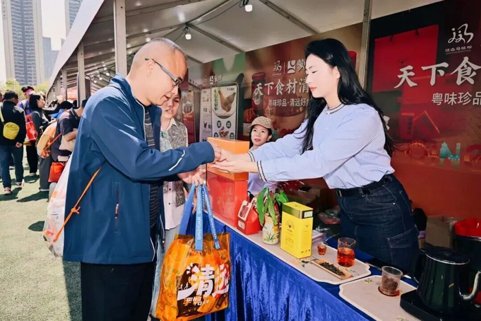 广货行天下,农文旅体商融合特色一直是清远马拉松赛的一大亮点。今年在领物嘉年华期间,组委会为选手准备了包含清远五大百亿农业产业代表性产品、共20000份的清远城市伴手礼,并在伴手礼中新增人手一份的“磬瑭文创盲盒”,选手可扫描盲盒上的二维码进行抽奖,有机会获得清远鸡、清远丝苗米、清远红茶、景区门票、雅迪电动车、护肤品套装、文创礼品等城市好礼。嘉年华现场,多家农业、文旅、房地产、金融企业现场展示展销,现场销售火爆,将赛事流量转为经济增量。