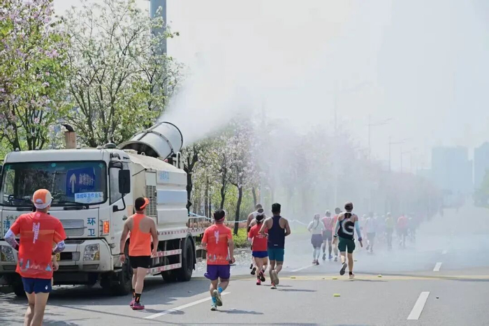 在赛事保障方面,为应对高温天气带来的风险,赛前3天,组委会在原有降温措施基础上进一步提升,最终设置了共15个冰水补给点、11个喷淋降温点、5个冰桶降温点、4个冰棍降温点、11个“清远鸡”冰水海绵降温点,帮助跑者获得更舒适的参赛体验、更安全的参赛环境。在选手服务方面,赛事在清城站、高铁清远站与城轨洲心站及城市其他主要点位设置了覆盖赛前领物、赛前集结、赛后疏散的全面免费接驳线路,保障选手们的出行需求。