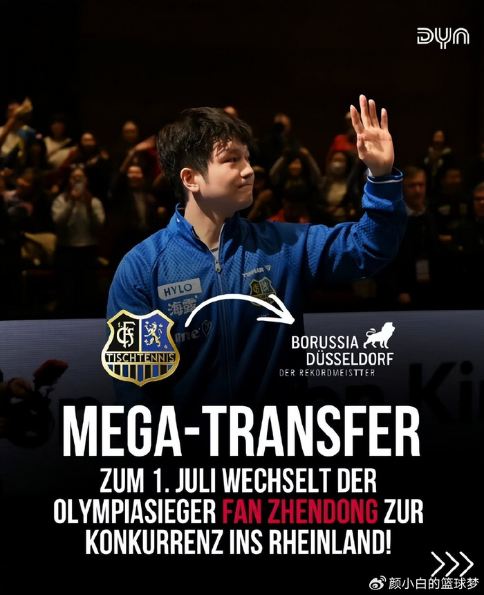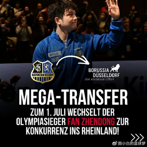 北京时间3月16日,德甲乒乓球俱乐部萨尔布吕肯官方宣布,中国球员樊振东下赛季将加盟杜塞尔多夫队。尽管俱乐部对他的离开感到遗憾,但更多的是对这段合作的深深感激。能够与这样一位世界级的顶尖球员合作一年,对俱乐部来说是一段独一无二的经历。从双方合作的一开始俱乐部就知道这只是为期一年的合作关系。