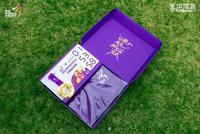 赛事精心打造 “梅” 好礼盒作为完赛礼,内含奖牌、完赛服与可DIY的奖牌支架,让跑者能自主定格完赛荣耀。