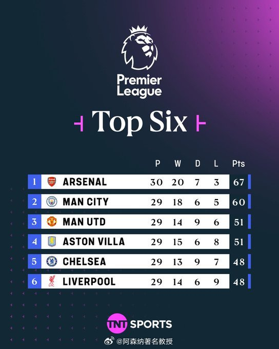 随着英超联赛进入最后冲刺阶段,阿森纳以30轮67分、领先曼城7分的优势领跑积分榜(曼城少赛1场积60分),时隔22年的联赛冠军近在咫尺,但曼城虎视眈眈的追击与枪手自身的赛程、心理双重挑战,让争冠悬念仍存变数。