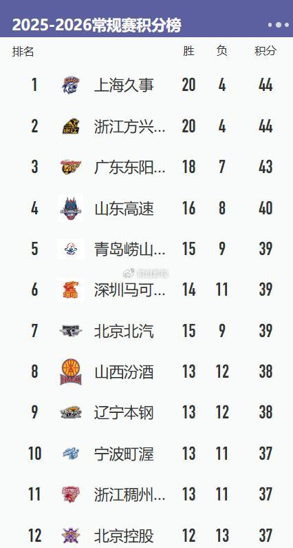 附:CBA积分榜最新排名