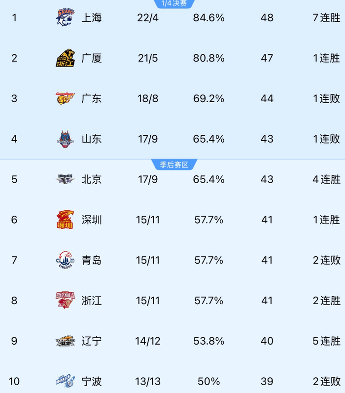 CBA惊奇一夜!山东爆冷惨败给浙江,北京上海广厦继续领衔排名