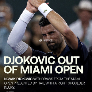 北京时间3月16日,网坛传奇、38岁的诺瓦克·德约科维奇通过官方渠道宣布,受右肩伤势困扰,他将正式退出即将开战的ATP1000迈阿密大师赛。作为这项赛事的传奇级选手,德约科维奇过往生涯曾6次登顶迈阿密,与阿加西并列赛事历史冠军榜首位,去年他还曾一路闯入决赛,最终获得亚军。